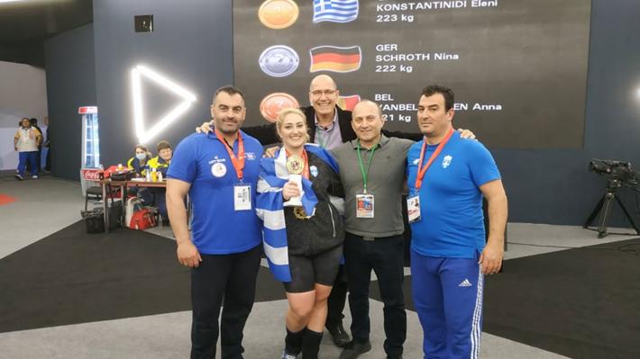 Μεγάλη επιτυχία για τα ελληνικά χρώματα σημείωσε στο Ευρωπαϊκό Πρωτάθλημα της Γεωργίας, που έγινε στην πόλη Μπατούμι η Ελένη Κωνσταντινίδη. Η Ελληνίδα πρωταθλήτρια κατέκτησε δύο χρυσά μετάλλια κι ένα χάλκινο, στην κατηγορία των 81 κιλών, ενώ στην περσινή διοργάνωση, στη Ρουμανία, ήταν τέταρτη αλλά στα +90 κιλά.
