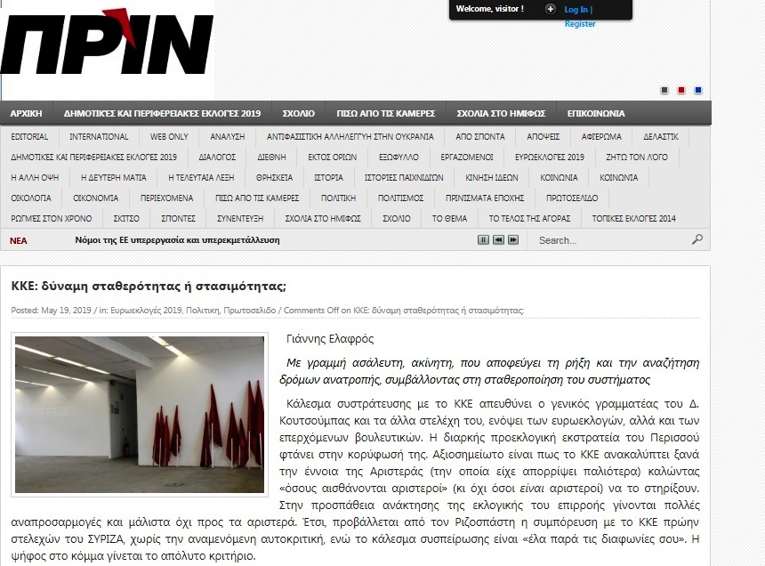 Επίθεση, με την οποία επιχειρεί να παρουσιάσει το Κομμουνιστικό Κόμμα Ελλάδας ως μία «συστημική» πολιτική δύναμη, που παραμένει μεν εκτός της κυβερνητικής εξουσίας, αλλά δεν αποτελεί απειλή για τα θεμέλια του καπιταλισμού. Στην ουσία, με την αντιπαράθεση, προσπαθεί να κρύψει την αδυναμία της να αντιπαρατάξει μία πειστική εναλλακτική πολιτική στρατηγική, που να συσπειρώνει μαζικές δυνάμεις. Γι’ αυτό και κάθε απόπειρά της για συγκρότηση «προοδευτικών, αριστερών μετώπων» πέφτει στο κενό, όπως πιστοποιείται και με τους δύο εκλογικούς συνδυασμούς που συγκροτήθηκαν για τη διεκδίκηση του δήμου Αθηναίων. Η κίνηση που στηρίζεται από το ΝΑΡ και το ΕΕΚ -υπό τον τίτλο «Αντικαπιταλιστική ανατροπή στην Αθήνα / Ανταρσία σε κυβέρνηση, Ε.Ε., κεφάλαιο»- με επικεφαλής τετραμελή επιτροπή που αποτελείται από τους Μ. Ρίζο, Ντίνα Ρέππα, Κατερίνα Μάτσα και Άννα Μπαρδάνη, εκτόξευσε αιχμές σε βάρος του ΣΕΚ για μονομερή χρήση του τίτλου του υπάρχοντος δημοτικού συνδυασμού «Ανταρσία στις γειτονιές της Αθήνας» και για ανακήρυξη του υποψήφιου δημάρχου (του Π. Κωνσταντίνου) με διαδικασίες «ξένες» προς τις αρχές της κίνησης.