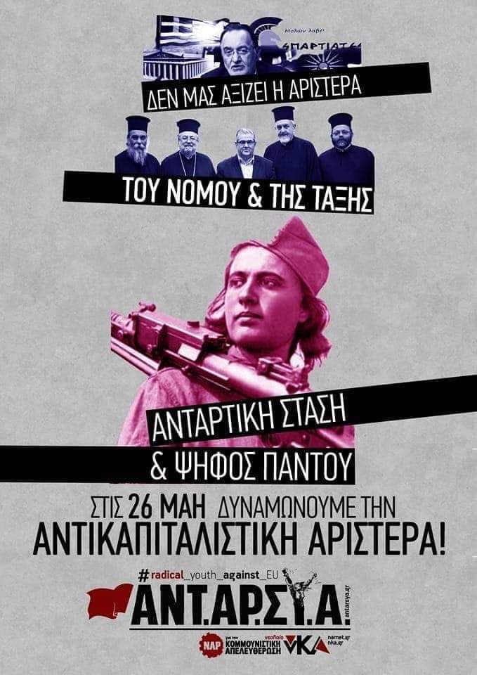 Ενόψει της πολυεπίπεδης εκλογικής μάχης, η ΑΝΤ.ΑΡ.ΣΥΑ. εντείνει την πολεμική της, βάζοντας στο στόχο το ΚΚΕ, τόσο σε κεντρική προεκλογική αφίσα, όσο και σε ειδικά αφιερώματα στην προσκείμενη εφημερίδα «ΠΡΙΝ».