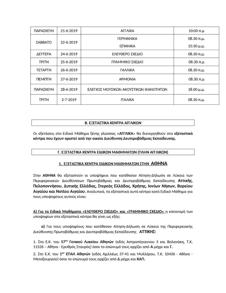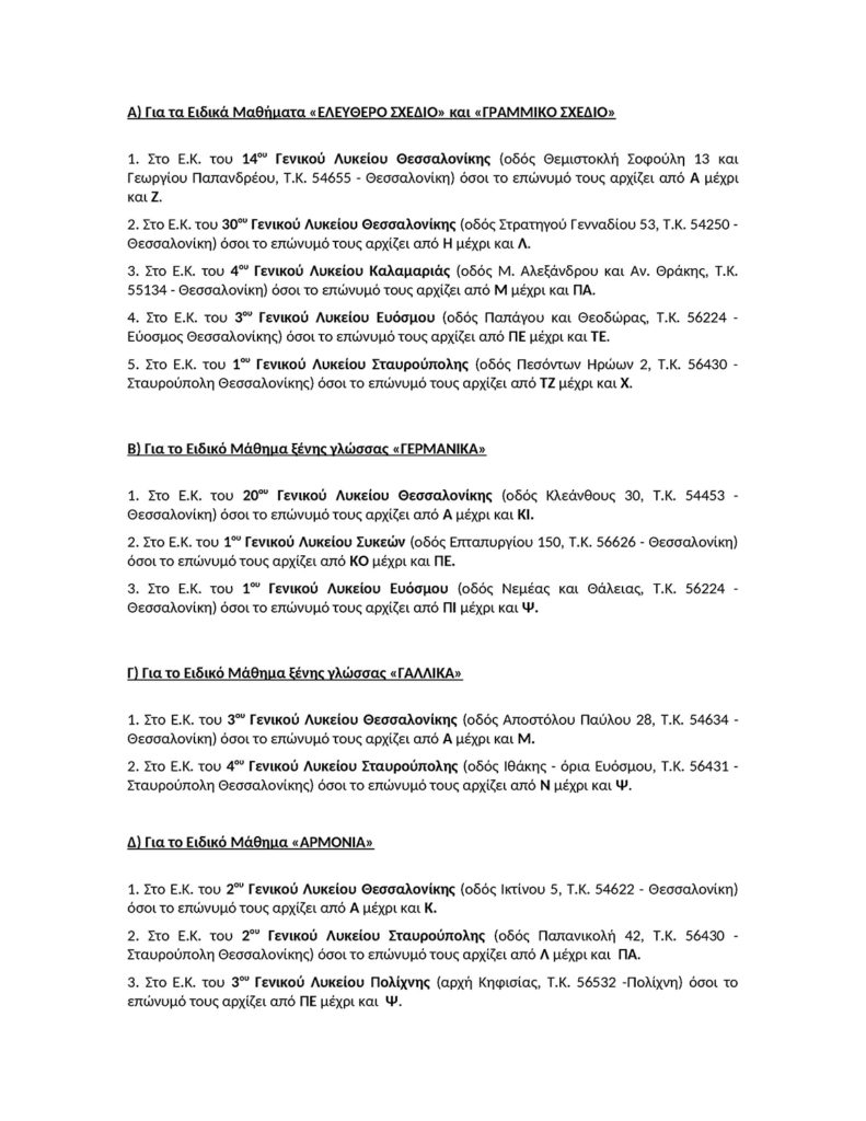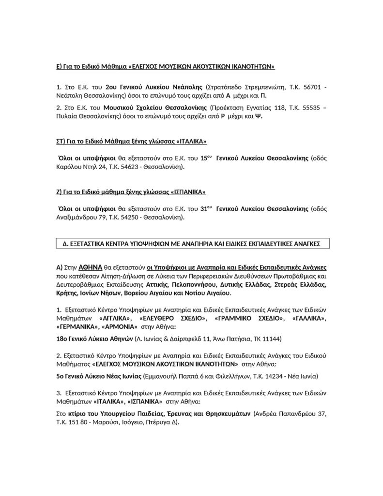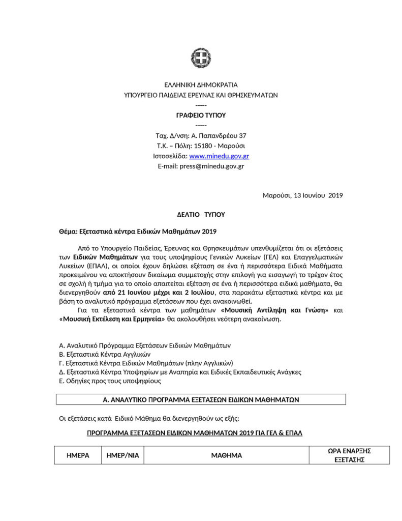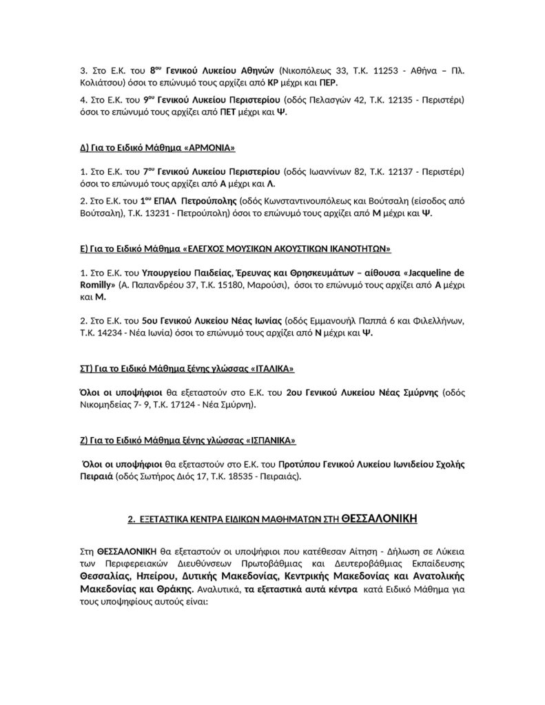Για τα εξεταστικά κέντρα των μαθημάτων «Μουσική Αντίληψη και Γνώση» και «Μουσική Εκτέλεση και Ερμηνεία», θα ακολουθήσει νεότερη ανακοίνωση.
