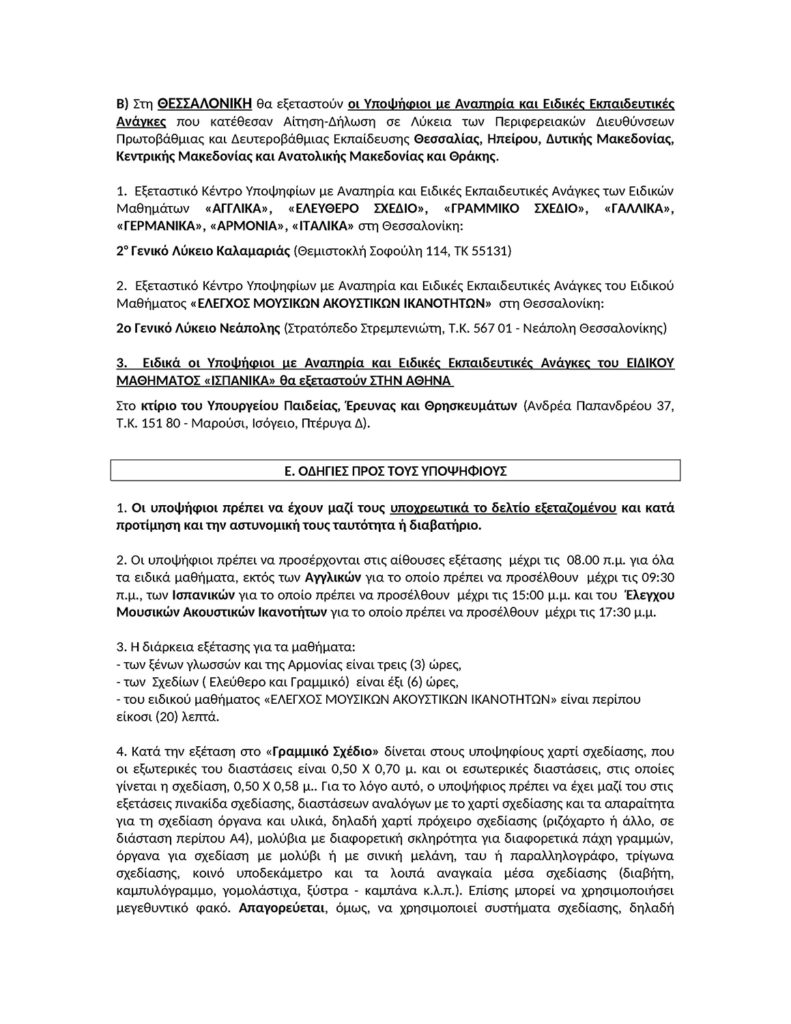 Ακολουθεί το αναλυτικό Πρόγραμμα Εξετάσεων Ειδικών Μαθημάτων, τα Εξεταστικά Κέντρα Αγγλικών, τα Εξεταστικά Κέντρα Ειδικών Μαθημάτων (πλην Αγγλικών), τα Εξεταστικά Κέντρα Υποψηφίων με Αναπηρία και Ειδικές Εκπαιδευτικές Ανάγκες και Οδηγίες προς τους υποψηφίους.