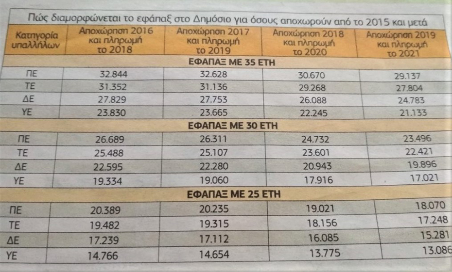 Δείτε στον παρακάτω πίνακα της εφημερίδας «Ελεύθερος Τύπος» πώς διαμορφώνεται το εφάπαξ: