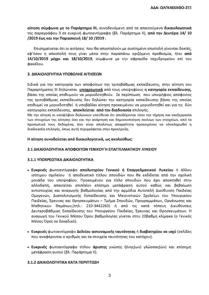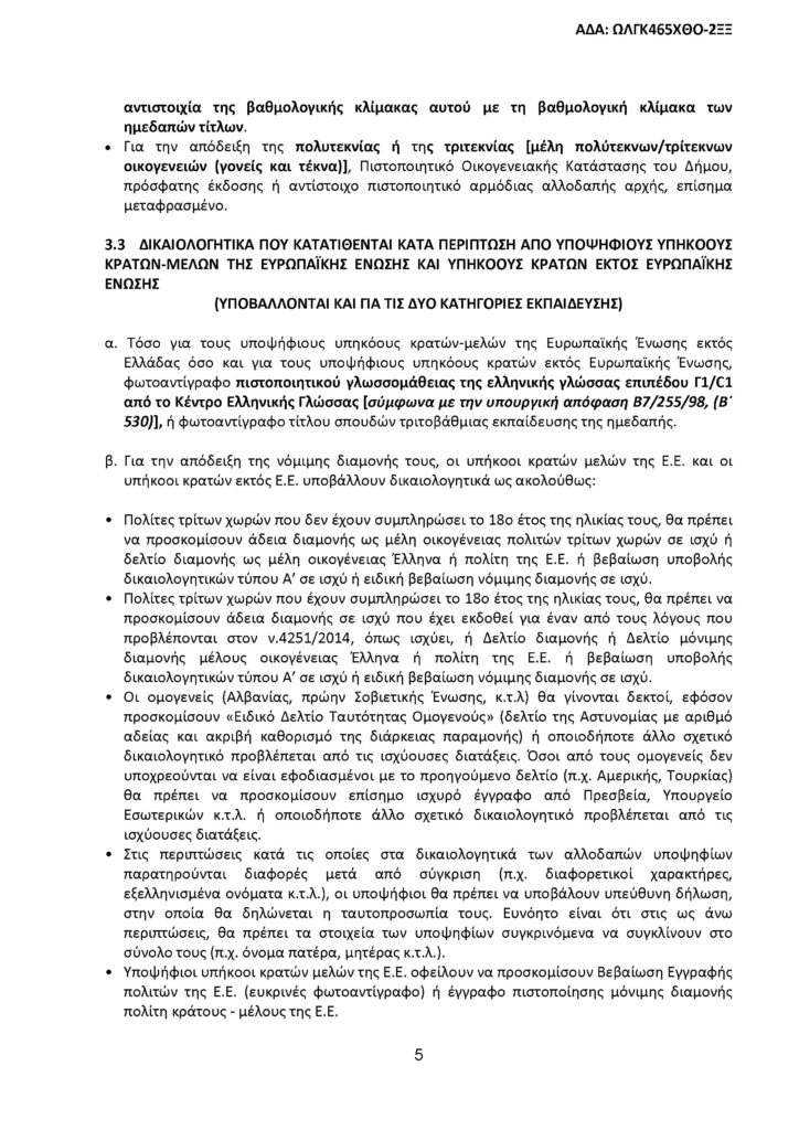 Τα δικαιολογητικά των υποψηφίων θα πρέπει να υποβληθούν από τη Δευτέρα 14 έως και την Παρασκευή 18 Δεκεμβρίου 2019 .