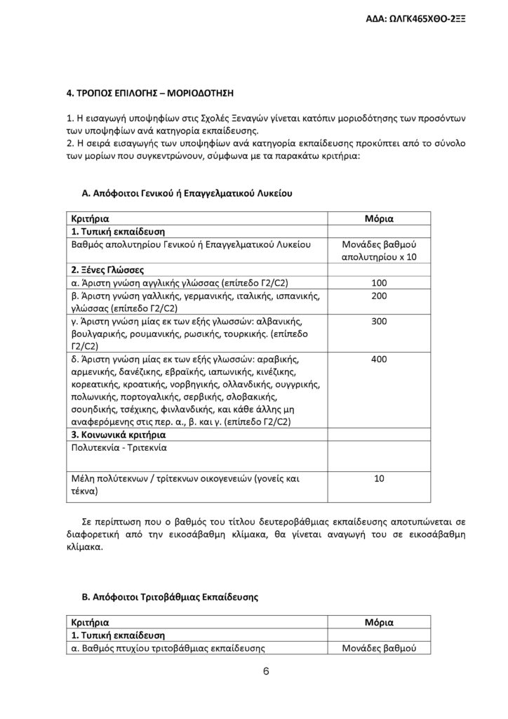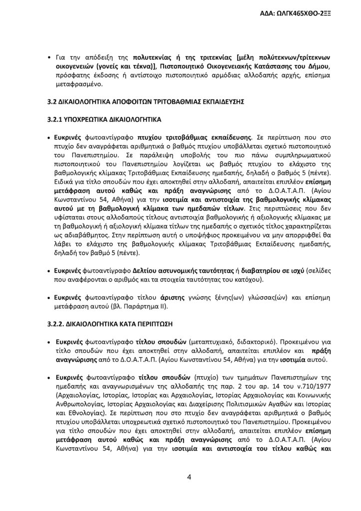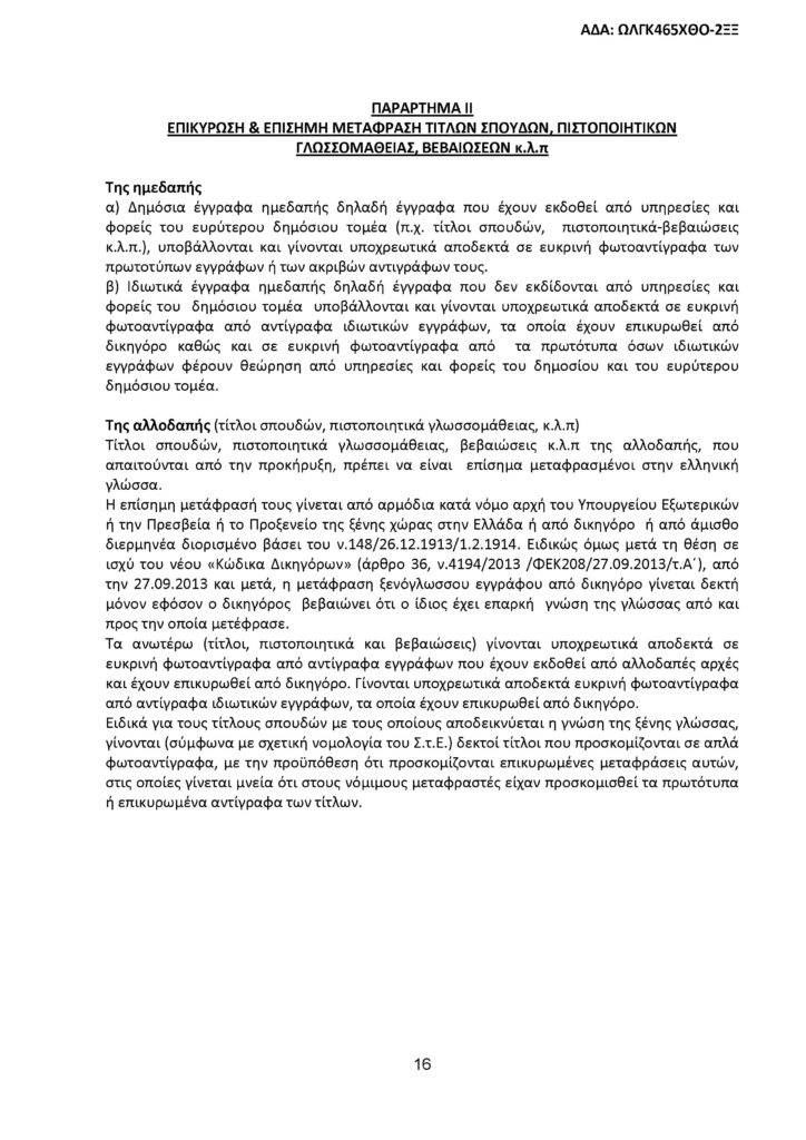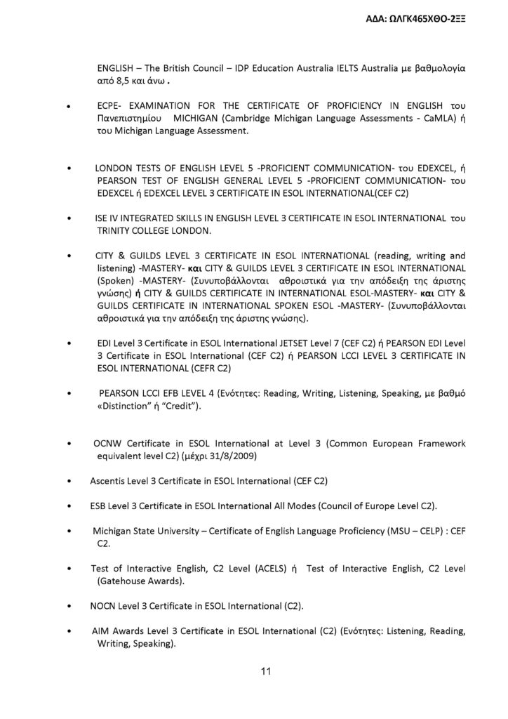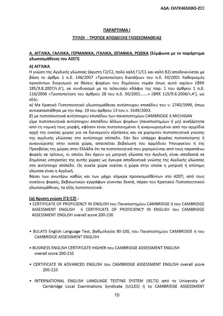 Όλοι οι υποψήφιοι, ανεξαρτήτως του τίτλου σπουδών που κατέχουν, πρέπει να έχουν πιστοποιημένη άριστη γνώση επιπέδου Γ2/C2, τουλάχιστον μιας (πέραν της ελληνικής) ξένης γλώσσας.