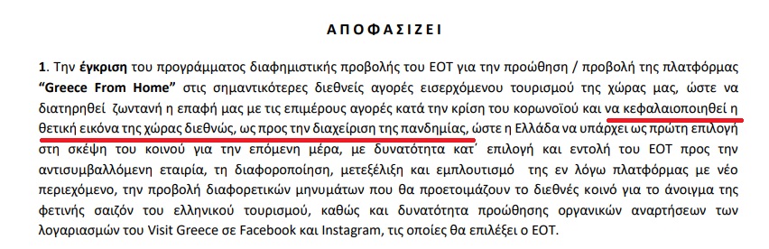 Για το δεύτερο εξάμηνο του 2020, προορίζονται, 458.800 ευρώ για την Google, συμπεριλαμβανομένου ΦΠΑ 24%, και 396.800 ευρώ για το Bloomberg, συμπεριλαμβανομένου ΦΠΑ. Το ποσό που θα διατεθεί σε LinkedIn και Twitter ανέρχεται σε 272.800 ευρώ, στην Expedia σε 372.000 ευρώ και στο Trip Advisor σε 223.000 ευρώ. Ακόμη, υπάρχει προϋπολογισμός 719.200 ευρώ, συμπεριλαμβανομένου ΦΠΑ, για το CNN και το Travel Channel, ενώ επιπλέον 272.800 ευρώ θα διατεθούν στο National Geographic.