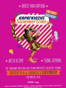 Η καλοκαιρινή μουσική κωμωδία του Ηλία Καρελλά είναι  προϊόν έμπνευσης από τις κλασικές παραστάσεις του Θεάτρου Σκιών και φυσικά από την επικαιρότητα, με ζωντανή μουσική και γιγαντοφιγούρες Θεάτρου Σκιών.