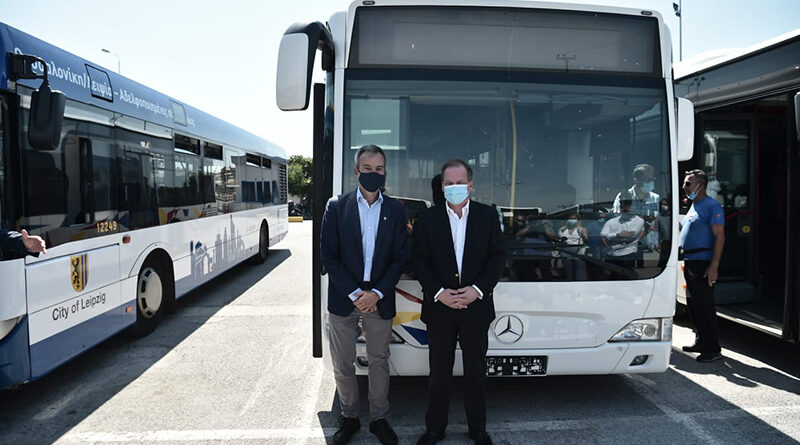 Κατά την προχθεσινή παραλαβή των πρώτων μεταχειρισμένων λεωφορείων από τη Γερμανία, που αγόρασε ο δήμος Θεσσαλονίκης, οργανώθηκε πανηγυρική εκδήλωση στο Σταθμό Μετεπιβίβασης ΙΚΕΑ, παρουσία του υπουργού Υποδομών και Μεταφορών, Κώστα Καραμανλή.