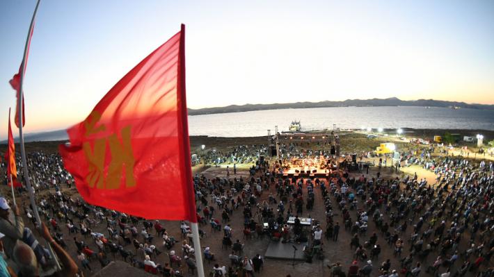 Εξαιρετική πρωτοβουλία από το ΚΚΕ να διοργανώσει εκδήλωση στο κολαστήριο της Μακρονήσου για τα αποκαλυπτήρια του Μνημείου που φιλοτέχνησε ο γλύπτης Μάρκος Γεωργιλάκης. Η θαυμάσια γλυπτική σύνθεση περιλαμβάνει πέντε ανθρώπινες μορφές που ξεπροβάλλουν από τη γη της Μακρονήσου.