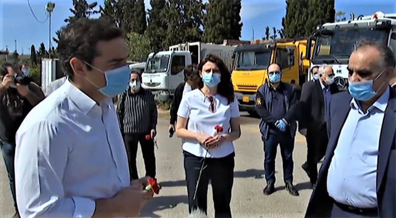 Ο δήμαρχος Περάματος, Γιάννης Λαγουδάκης υποδέχεται τον πρόεδρο του ΣΥΡΙΖΑ, Αλέξη Τσίπρα