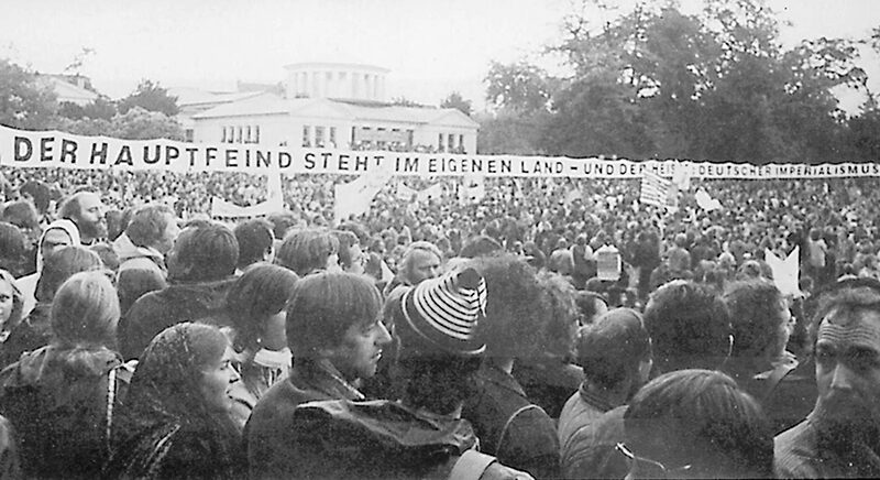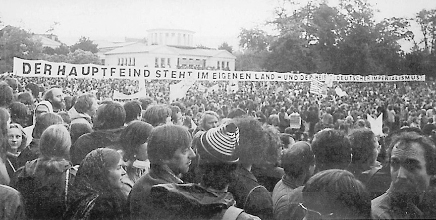 Οι διαδηλωτές, που είχαν φτάσει από όλες τις γωνιές της Γερμανίας, καθώς και από γειτονικές χώρες, διαμαρτύρονταν για τη φιλοϊμπεριαλιστικήπολιτική της κυβέρνησης Σμιτ απέναντι στην απόφαση του ΝΑΤΟ, τονΔεκέμβριοτου 1979, που προέβλεπε την εγκατάσταση 572 αμερικανικών πυρηνικών πυραύλων και πυραύλων εδάφους «Κρουζ» μέσου βεληνεκούς στη Δυτική Γερμανία και άλλες τέσσερις ευρωπαϊκές χώρες.