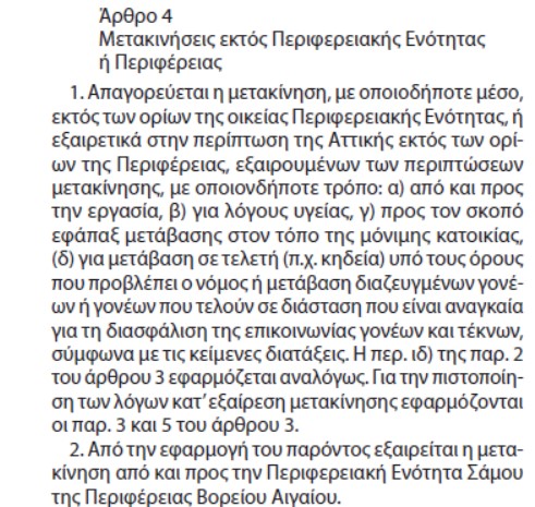 Τι ισχύει για τις μετακινήσεις πολιτών εκτός Νομού στην περίοδο της 2ης καθολικής καραντίνας