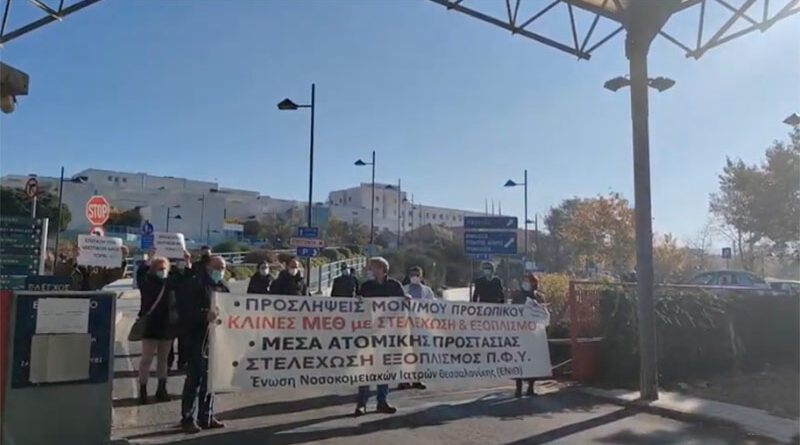 Φωνάζοντας συνθήματα για ουσιαστική χρηματοδότηση του δημόσιου συστήματος Υγείας και για προσλήψεις γιατρών και νοσηλευτώνhttps://www.youtube.com/watch?v=Cow-KPUVYuU&feature=emb_logo,στηλίτευσαν το γεγονός ότι, μολονότι δεν υπήρξε ο απαιτούμενος σχεδιασμός για την  προστασία του λαού από την πανδημία, επί μήνες το υπουργείο Υγείας αρκούνταν σε υποδείξεις της τελευταίας στιγμής, χωρίς να εξασφαλίζει προσωπικό και προσλήψεις.