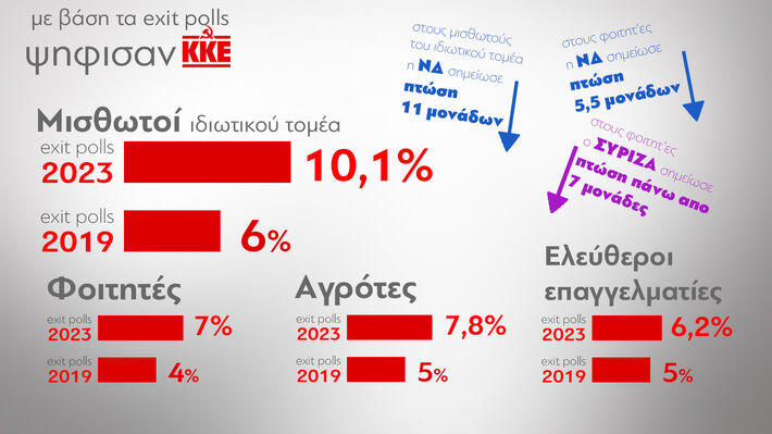 Αύξηση της εκλογικής δύναμης του ΚΚΕ στους μισθωτούς του ιδιωτικού τομέα, τους φοιτητές και τους αγρότες