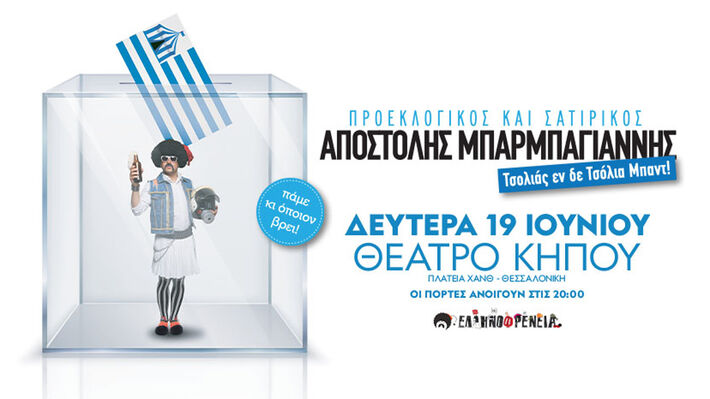 ΠερισσότεραΟ punk φουστανελάς ανηφορίζει στη συμπρωτεύουσα με άγριες διαθέσεις, το εκλογικό βιβλιάριο στο χέρι και… όποιον βρει το βόλι! Στο