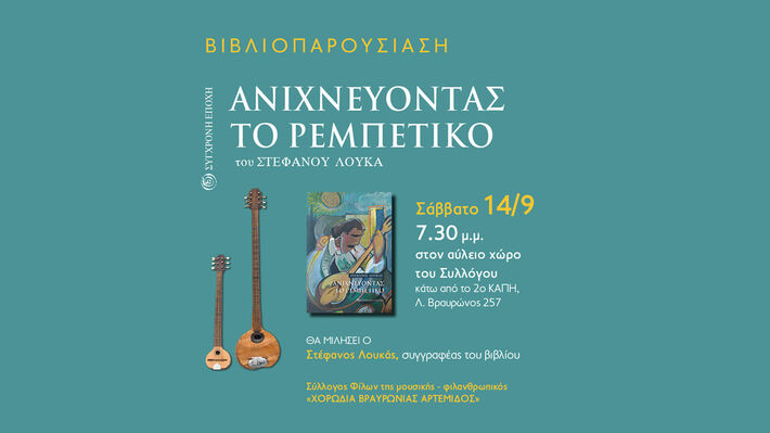 ΠερισσότεραΤην έκδοση «Ανιχνεύοντας το ρεμπέτικο» της «Σύγχρονης Εποχής» θα παρουσιάσει το προσεχές Σάββατο, στις 19:30, στον αύλειο χώρο του Συλλόγου