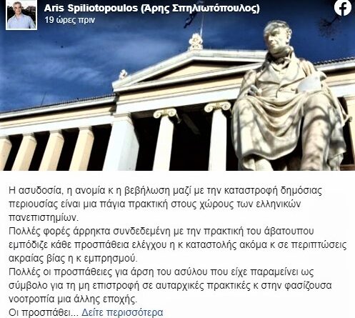 Περισσότερα«Η ασυδοσία, η ανομία και η βεβήλωση μαζί με την καταστροφή δημόσιας περιουσίας είναι μια πάγια πρακτική στους χώρους των